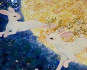 夜も深いころ、吉祥文様を纏った白い獣たちが戯れます。
